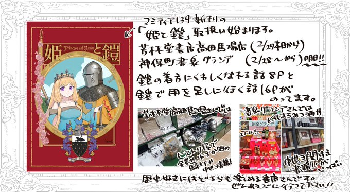 >RT×2 書泉さんの大騎士博グッズ、私の物も含めて、芳林堂さんがしばらく在庫を引き次いで展開してくださるようです!(4F #中世ヨ コーナーでなく3Fです⚠️) 大騎士博に通販のお問い合わせが度々あったとのことで、Tシャツは代引き発送可とのこと。何点かは私のBOOTH等でも置けるよう近く調整予定です twitter.com/horindobaba/st…