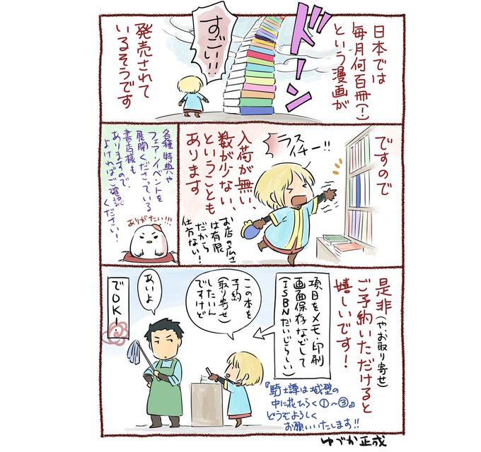 今、書店で『騎士譚~』を探すのは、ちょっと大変だと思うので、書店お取り寄せ用の情報をそっと置いてきおきます。よろしければ…🙏 首都圏にお住まいの方は、神保町の書泉グランデさん4F、芳林堂書店高田馬場店さん4Fの、歴史コーナー(#中世ヨ ーロッパ)に多分全巻揃っています。 #騎士譚 twitter.com/adrian_wizardr…