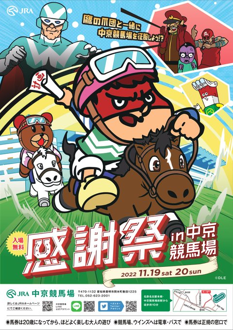 \🐴中京競馬場を征服しちゃいます/ 博士が競馬のレース出目予測機を発明しました! つまり競馬場を征服して払戻金を独り占めすれば、貧乏秘密結社卒業のチャンス! #中京競馬場 で11/19(土)・20(日)に感謝祭ってイベントをするそうなのでちょっくら潜入してきます jra.jp/news/2022chuky…