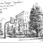 Morgenlicht, Spandau Bus kommt nicht.../バスが来ない、、、 Mini #Skizzenblock 10x15cm #Kunst #art #Berlin #Zeichnung #drawing #アート #ペン画 #スケッチ #akiranakao #クロッキー帳 #中尾成 akira-berlin.de