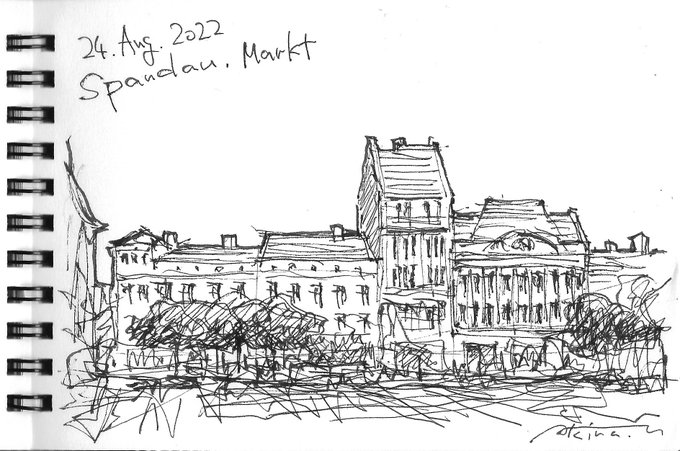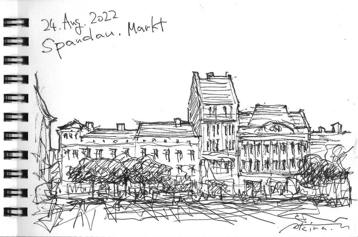 Markt, Spandau Mini #Skizzenblock 10x15cm #Kunst #art #Berlin #Zeichnung #drawing #アート #ペン画 #スケッチ #akiranakao #クロッキー帳 #中尾成 akira-berlin.de