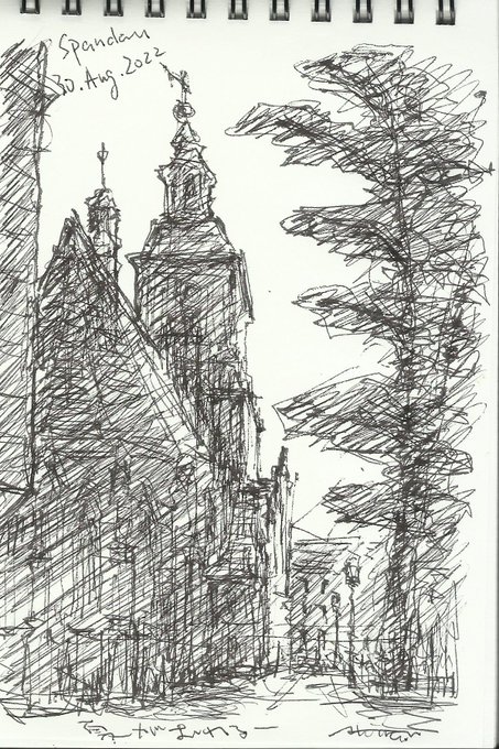 St. Nikolai Spandau Mein #Skizzenblock #Spandau #Kunst #art #Berlin #Zeichnung #drawing #アート #ペン画 #スケッチ #akiranakao #クロッキー帳 #中尾成 akira-berlin.de