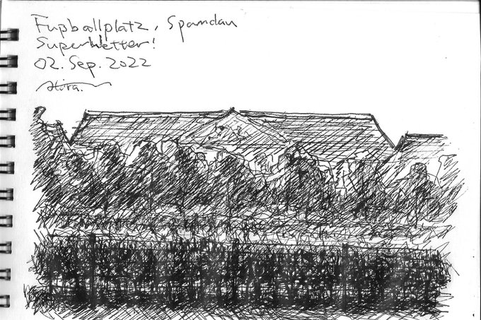 Kinderfußball Wartezeit, Spandau 子供サッカー待ち時間スケッチ Mini #Skizzenblock 10x15cm #Kunst #art #Berlin #Zeichnung #drawing #アート #ペン画 #スケッチ #akiranakao #クロッキー帳 #中尾成 akira-berlin.de