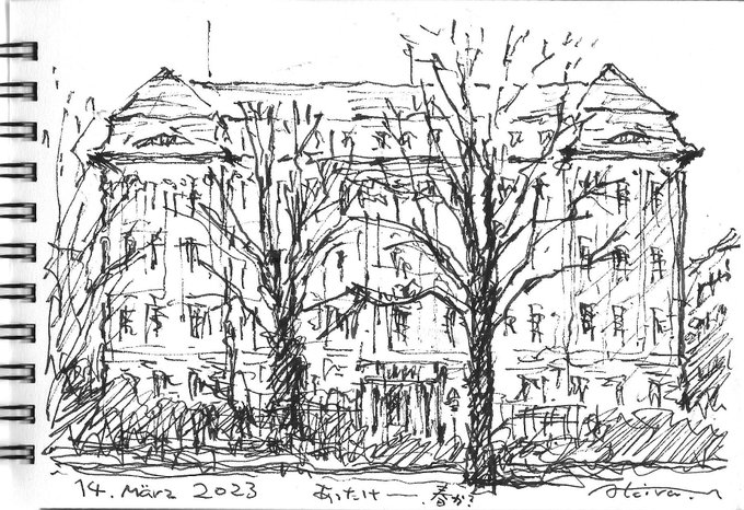 Super-Wetter nur Vormittag Polizeihaus am Sophie-Charlotte-Platz Mein #Skizzenblock #Charlottenburg #Kunst #art #Berlin #Zeichnung #drawing #アート #ペン画 #スケッチ #akiranakao #クロッキー帳 #中尾成 akira-berlin.de