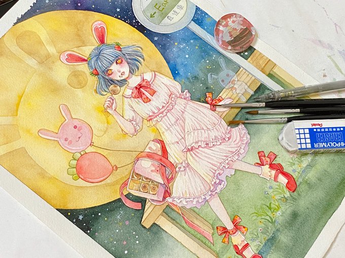 Happy Mid-Autumn Festival :D 中秋快乐🥮🥮🌝 #watercolor #midautumnfestival #painting #bunny #artoftheday #中秋 #art #mooncake