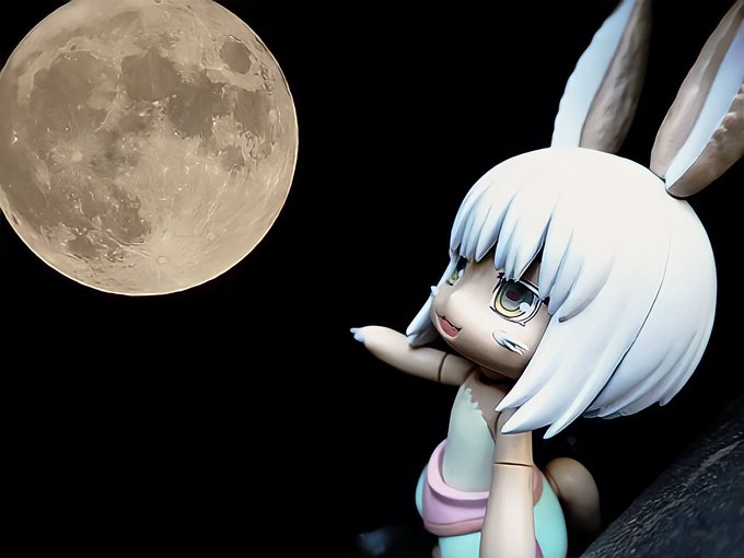 #深夜のねんどろ撮影60分一本勝負 9/10お題 【ちゅうしゅう】 今夜撮った月🌕×うちナナチ🐰名月でしたね、ナナチ。 今夜のタグとTL、各地のねんどろちゃんたちが、同じ月を見ながらお月見してる感が伝わってき、めっちゃ良いそすね✨ #ねんどろいど #メイドインアビス #ナナチ #中秋の名月2022