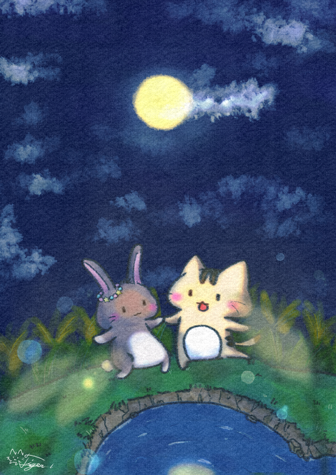 お月見だんご! 今日は中秋の名月なのだ⚪️🐧♪ もぐもぐ⚪️🐰♪ 大きなお団子なのだ!⚪️🐤♪ #イラスト #絵描きさんとつながりたい #イラスト好きと繋がりたい #お月見 #中秋の名月2022 #ピヨ #ペンペン #ピヨペン