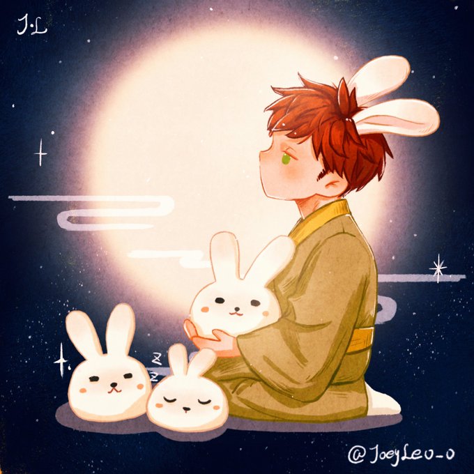 『中🌕秋』 遲來一天的中秋節賀圖 設定是玉兔翹班到地球上烤肉🤤 "玉兔:不搗麻糬啦!JOJO!" 祝各位中秋節快樂哦! (\_/) ( •_•) />🥮> #原創 #中秋節 #玉兔 #擬人 #絵 #中秋の名月 #月の兎 #イラスト #original #illustration #jaderabbit #moomfestival
