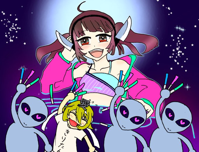 #東北ずん子深夜の真剣お絵描き60分一本勝負 #東北きりたん #中部つるぎ テーマ【ミュージック】 二週連続大遅刻ごめんなさい!これでも急いでいるのです🙇♀️ #超絶kawaiiDJターン のファンアートでもあります。PVにもUFOが出ております。 なんかロリコン疑惑の人も混ざってそうだなと思い加えましたw