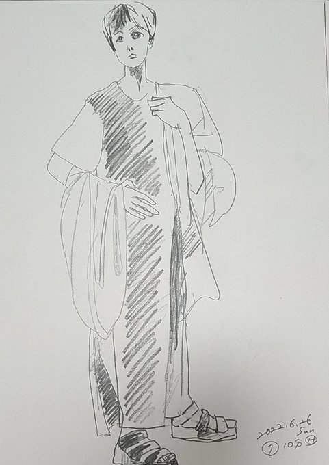 2022.6.26 #中野ファッションクロッキー ② モデルの #千慧 さん、大きな瞳と少女の佇まいも素敵でした。#日々描く #FashionCroquisNzero #クロッキー #croquis #イラスト #デッサン #中野 twitter.com/miraiasi/sta…