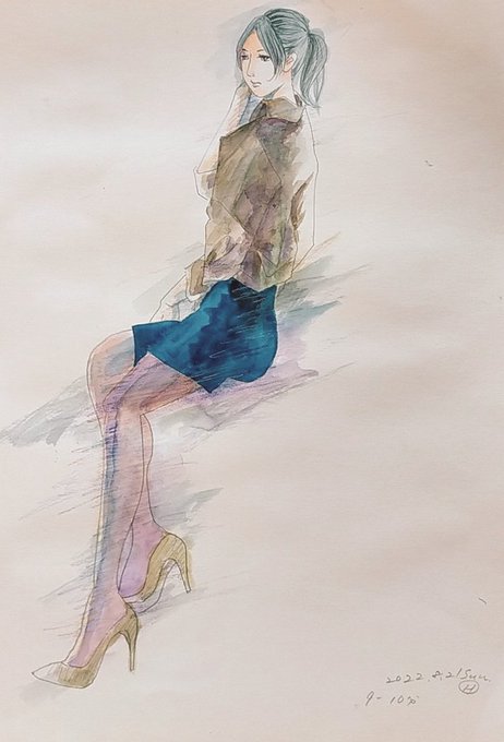2022.Mar #中野ファッションクロッキー 久しぶりに描く大ファンのモデルさん。納得いく迄は描けなかったよう😢 でも描く事ができたのは嬉しいです😃 #drawing #sketch #artwork #ドローイング #fashionillustration #ファッションイラスト #illustration #イラストレーション #イラスト