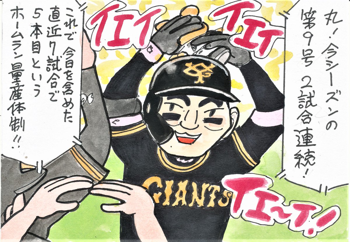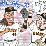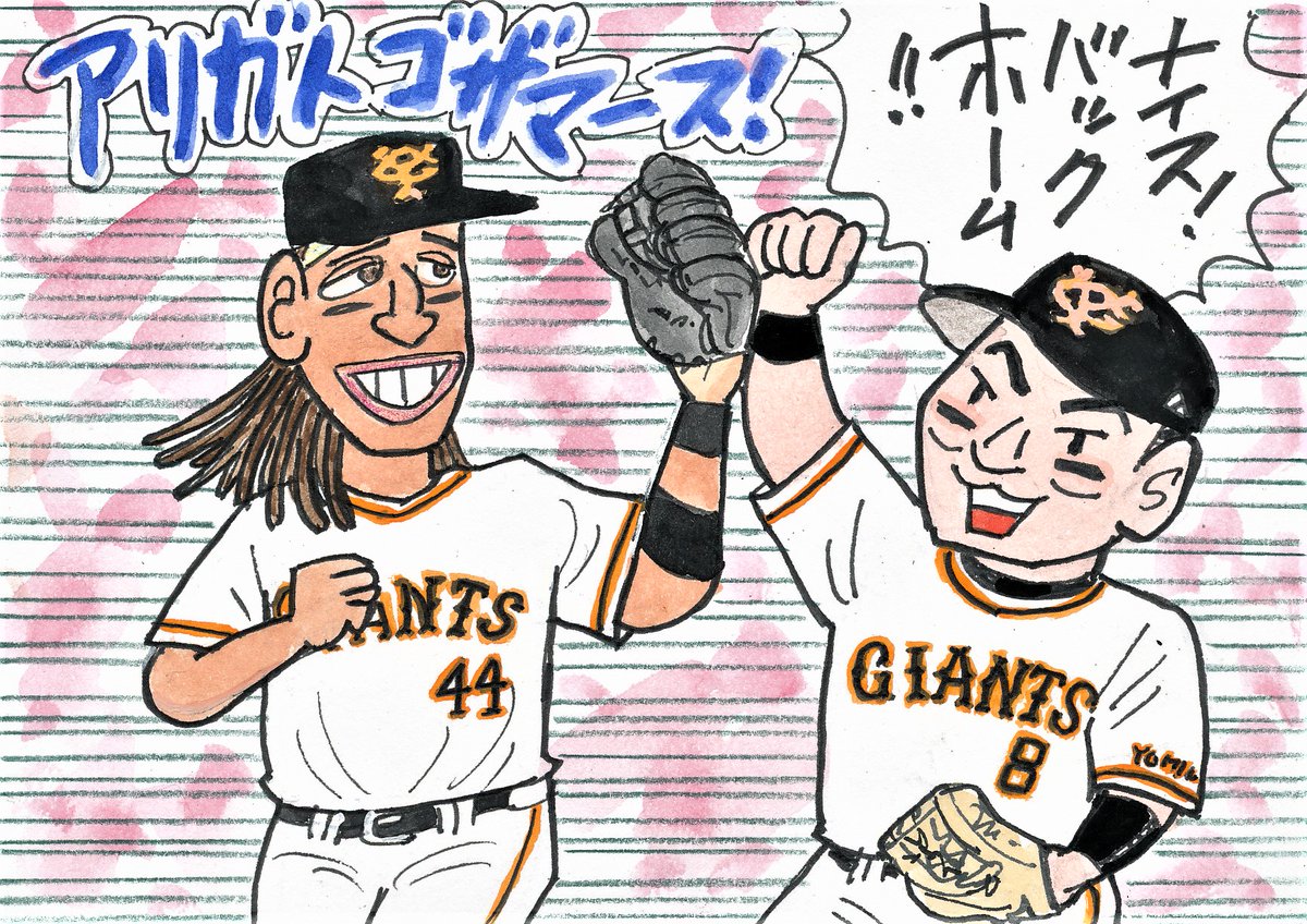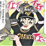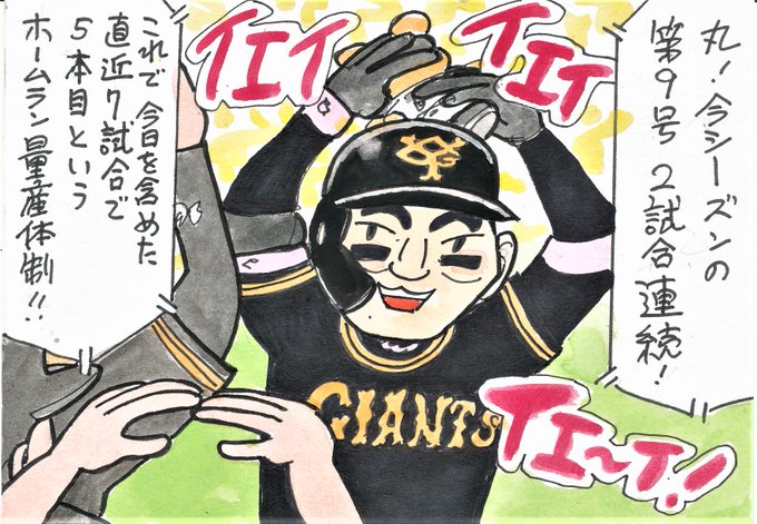 きのうの巨人―中日から。 ノーバウンド返球でホームに突っ込む阿部選手をアウトにして、 丸選手と喜ぶこの選手を描きました。私、中日ファンですが、スローイングに難があったこの選手の努力が見られて、ちょっと感動しました。 #アダム・ウォーカー #丸佳浩 #読売ジャイアンツ