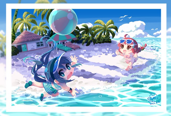 若干の色調整と加筆したので再投稿失礼します! 色々課題あるけど…!次の絵で! #illustration #ちびキャラ #主線なしイラスト 🎨pixiv.net/artworks/10908…