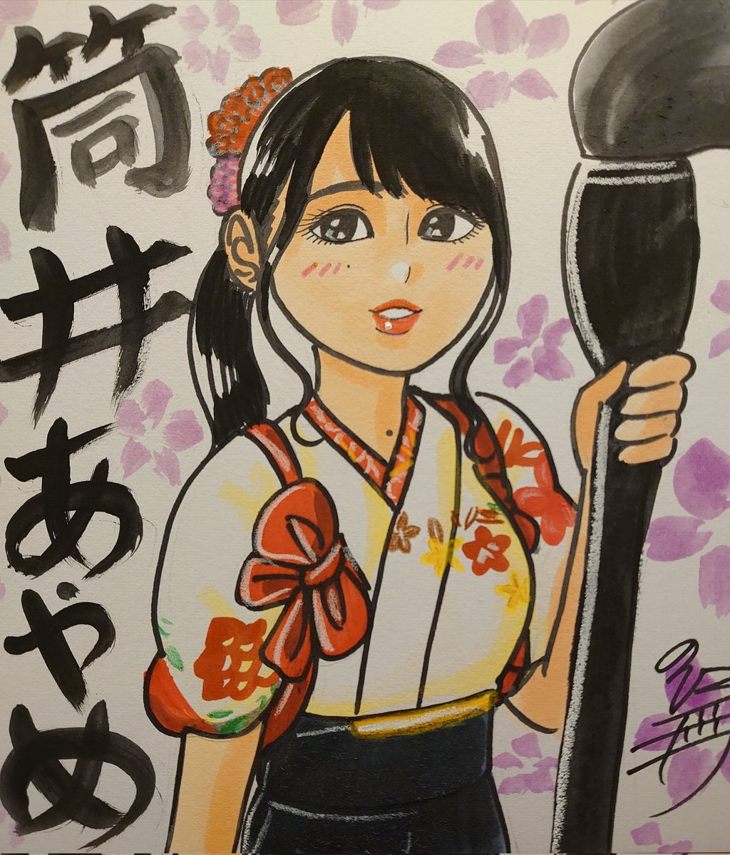 ドン! 今日描いた乃木坂ちゃんで〜す(*^^*) 書道パフォーマンス(*^^*)❤ #似顔絵 #乃木坂46 #筒井あやめ #乃木坂46好きな人と繋がりたい #乃木坂イラスト #乃木坂46時間TV #乃木坂電視台