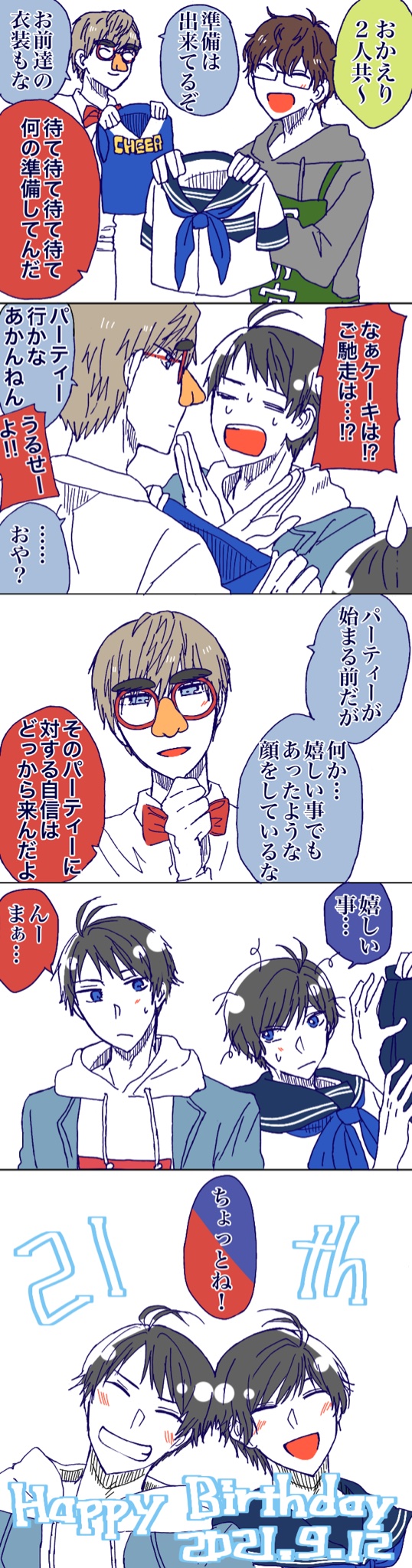 💧🌈 COSPLAY/QUELL 🌈💧 ※衣装捏造アリ 「「「柊羽~!お誕生日おめでとう~🎉」」」 和泉柊羽:ひねこ 堀宮英知:おまむさん 久我壱星:雑食さん 久我壱流:燈夜さん Photo:ミスリルさん #和泉柊羽生誕祭2023