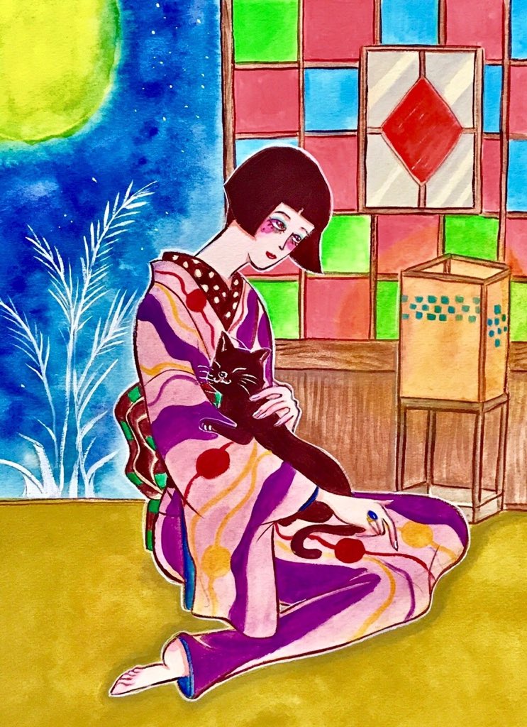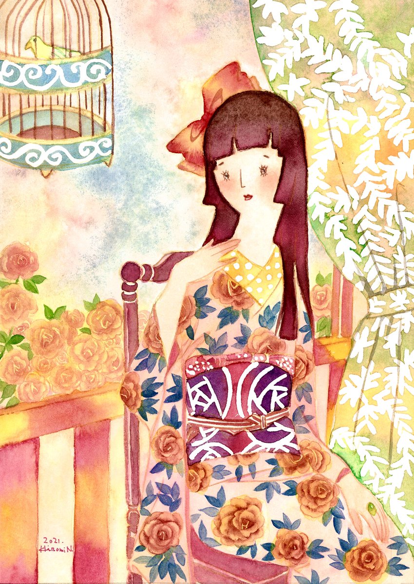 【新作】 「ときめき」 2022年.F4号.ホワイトアイビス紙.透明水彩.マスキングインク. #大正ロマン #イラスト #着物 #昭和モダン #芸術の輪 #創作の狼煙 #アトリエの系譜 #Twitterで楽しむ展覧会 #watercolour #透明水彩 #art #レトロ #illustration #アート好きな人と繋がりたい #乙女画