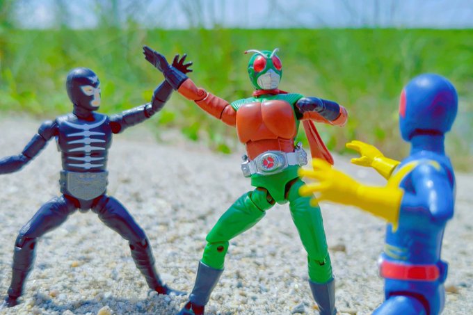 「ここは我々に任せろ!」 「 いかにも仮面ライダー 1号!」 ※以下略 『おおっと待った!俺は 仮面ライダーV3!スーパー 1!ここは俺達に任せろ!』 #仮面ライダー #仮面ライダースーパー1 #九人のライダー #掌動 #shodo仮面ライダー #特撮 #オモ写