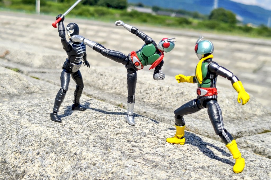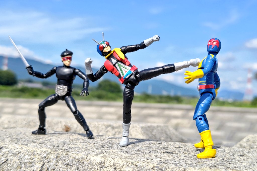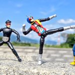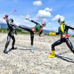 おはようございます☀️ スカイライダーとストロンガーのダブルキックって胸熱 ですよね( ´∀`) #仮面ライダー #仮面ライダーストロンガー #スカイライダー #九人のライダー #掌動 #shodo仮面ライダー #特撮 #オモ写