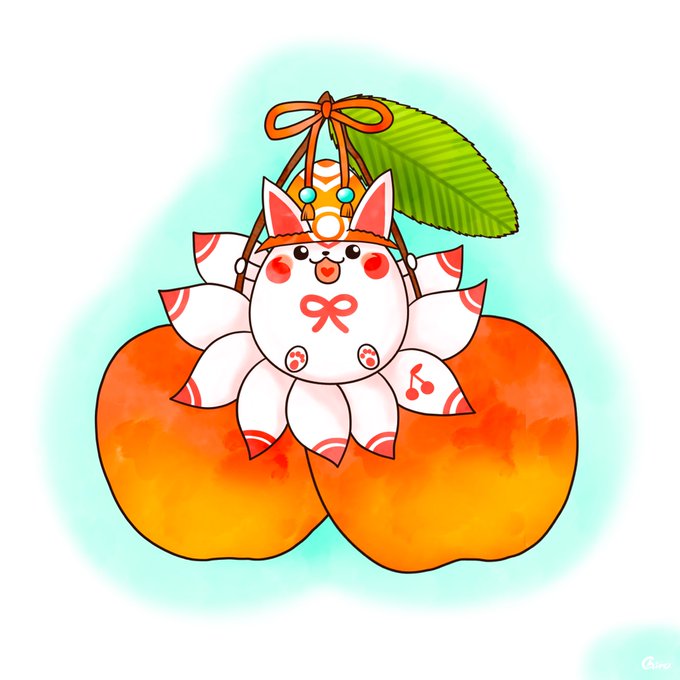 『さくらんぼ🍒』九尾狐担当の『キュウ』ちゃんです。 #イラスト #創作イラスト #illustration #さくらんぼ #ししんじゅう #九尾 #九尾狐 #絵柄が好みっていう人にフォローされたい