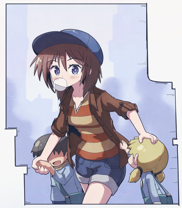 「はーい、うちに任せり~!...変なことしたらぶちくらすけんね」 悠都ちゃん、お誕生日おめでとう~🎉⚾️🧢 悠都ちゃんの誕生日なのになんで隊長が癒される感じなんです?(お膝に頭乗せながら #九炉鉄悠都生誕祭 #アリスギアお絵かき