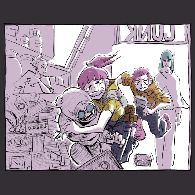 #二人一緒にお買い物 #コルクラボマンガ専科 #漫画家志望さんと繋がりたい #絵描きさんと繫がりたい #イラスト #グランド・タートル号の出来事 この二人も元々描いている作品のキャラ。たまの休みに別々に出かけてるが呼び出される一幕。表情描きたかったので3コマです。