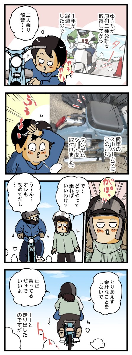 『男前のタンデム』 スーパーカブで二人乗りをしたら、過酷過ぎて心が折れそうに、、、 #コミックエッセイ #スーパーカブ #タンデム #二人乗り #漫画が読めるハッシュタグ ブログはこちら↓ ameblo.jp/yukitanoyonkom…