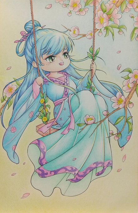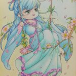 【#イラスト】 〜清明〜 『青く澄んだ空と風に誘われて。 今日こそ素直になってみよう…』 #絵の世界 #イラスト好きと繋がりたい #絵描きさんと繋がりたい #アナログ絵 #一日一絵 #二十四節気