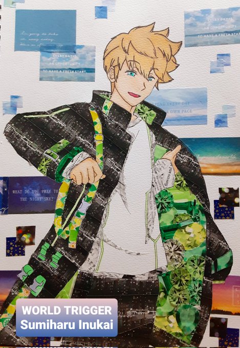 #ワールドトリガーファンアート #犬飼澄晴 #二宮隊 今日新しいマステをGET😊 🐶先輩概念のマステを選んだ結果 エンタメくじの🐶先輩に仕上がりました✨ 色んな空を貼ったのは 🐶先輩の魅せる顔を表現してみたよ😊