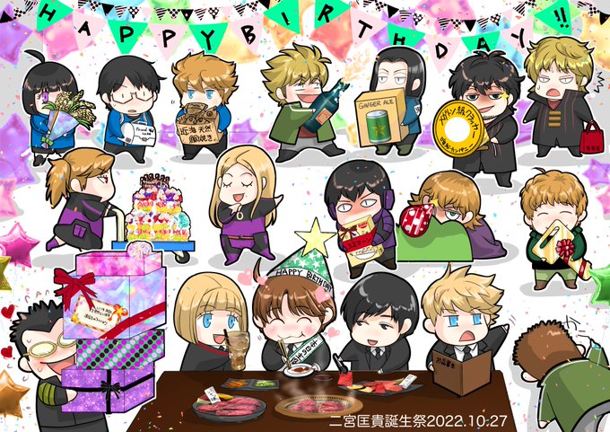 お誕生日おめでとう!二宮さん。 二宮匡貴さんに関係の深いキャラを集めて最高にハッピーな絵を描きました!(小ネタもいっぱい仕込んでみた) #二宮匡貴生誕祭2022 #二宮匡貴誕生祭2022 #二宮隊員お誕生日おめでとう