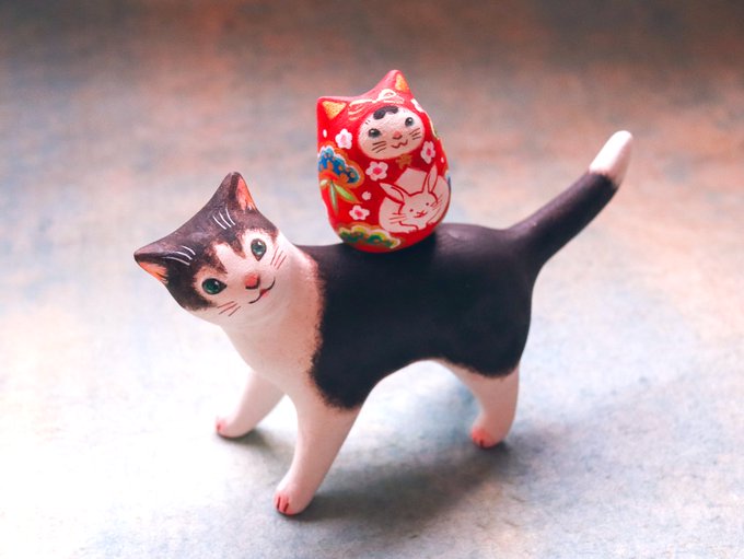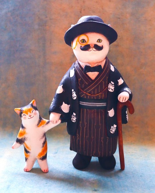 『こねこを連れたネコスキーさん』は抽選販売になりました🎩 どうぞよろしくお願いいたします。 ◆ご応募受付期間:2/4〜2/12 ※期間中に定休日あり 「企画展中の抽選販売について」 natsumehiro-info.blogspot.com/2021/08/kikaku… インスタライブではヒロさんに似てるという話題が♡😊 #二月のネコスキー