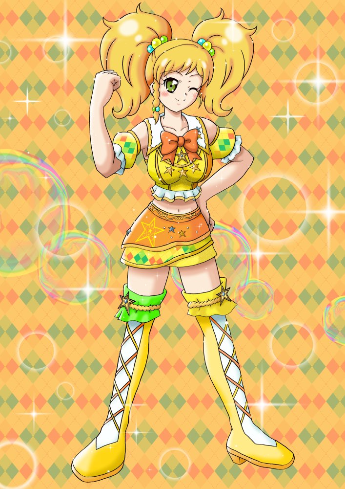 なにも思い浮かばず、手元にあった刃牙を参考にしました… #アイカツ版深夜の真剣お絵描き60分一本勝負 08/28 22:00から開始 お題は「夏樹みくる、二階堂ゆず、早乙女あこ、蝶乃舞花」