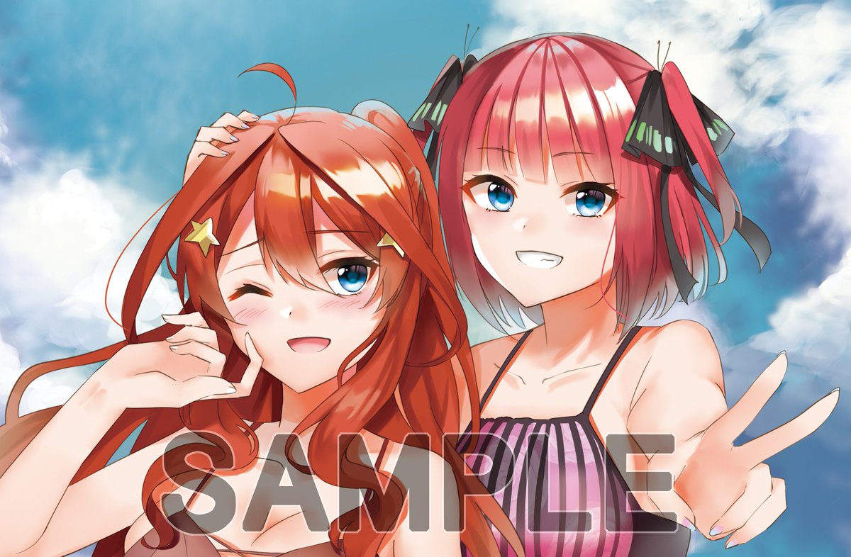 とももんさん(@tomomon0920)主催の五等分の花嫁アンソロジー「五つ子ちゃんは五等分できない。」にイラスト1枚で参加させていただきました!水着二乃ちゃんと五月ちゃんです! 是非よろしくお願いします!⭐️⭐️ #五人の花嫁に祝福を