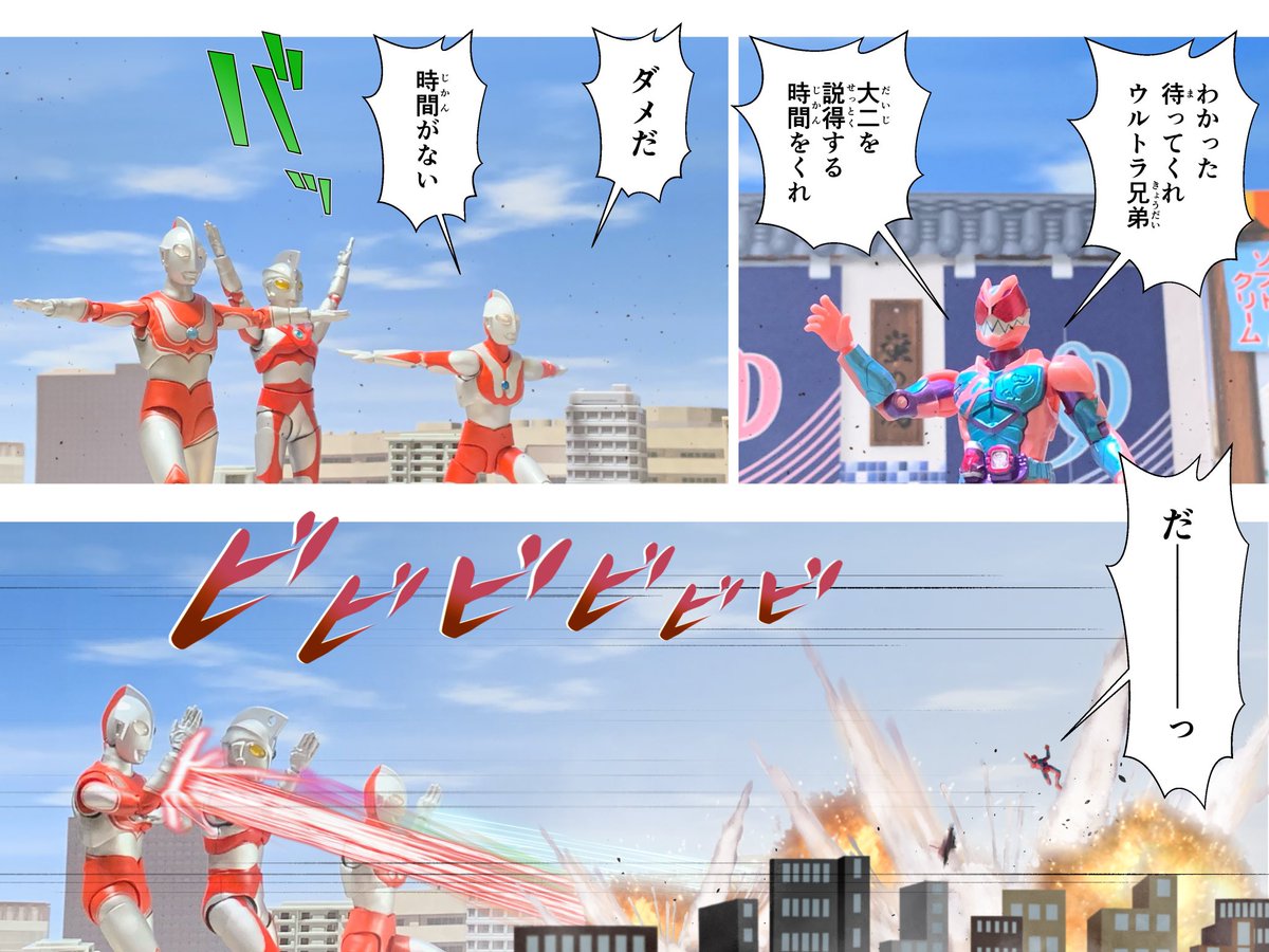 #仮面ライダーリバイス 五十嵐兄弟対ウルトラ兄弟の巻 7 #装動 #仮面ライダーリバイ #フィギュアーツ #ウルトラマン #ウルトラマンエース #ウルトラマンジャック #オモ写 #デジラマ #ブンドド #お笑いフィギュア劇場 #楽しく玩具撮影中 #五十嵐兄弟対ウルトラ兄弟の巻