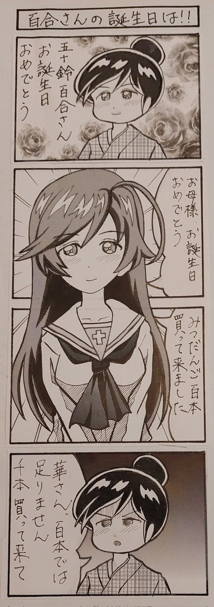 百合ちゃん♥️ HAPPY♥️BIRTHDAY♥️ お誕生日おめでとう。 親子の食事シーンを見てみたいです。 #五十鈴百合生誕祭2022 #五十鈴百合生誕祭 #GuP版深夜のお絵描き60分勝負 #ガルパン四コマ漫画