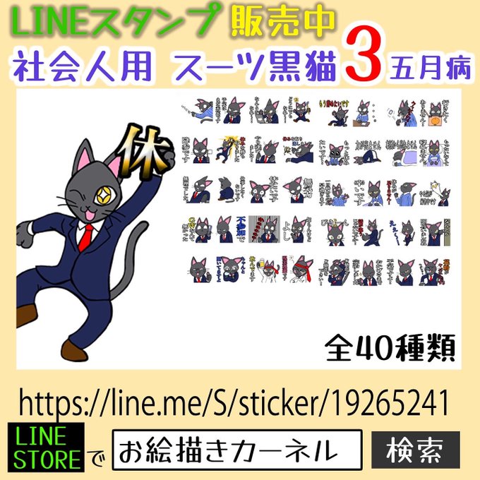 社会人向け黒猫の無気力五月病LINEスタンプを作りました。 😤時期的にギリギリのリリース 使って頂けると大変ありがたいです line.me/S/sticker/1926… 作者のページ store.line.me/stickershop/au… #LINEスタンプ #五月病 #黒猫 #社会人 #イラスト #敬語 #絵描きさんと繋がりたい #絵
