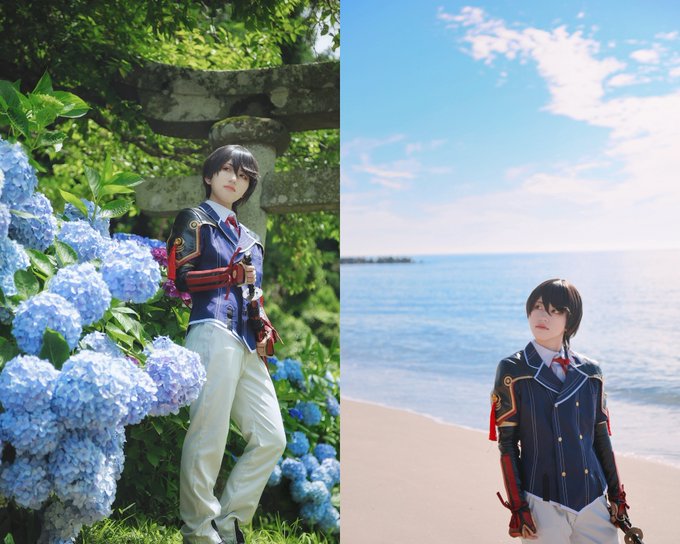 #五月雨に映える紫陽花を眺めながら刀剣乱舞好きさんと繋がりたい #刀剣乱舞好きさんと繋がりたい #cosplay 南海先生と加州がメインの野外レイヤー。土佐に飢えています。567もあってイベント控えておりますが、その分個撮で自然豊かな地元土佐で活動させていただいております。ご縁があれば。