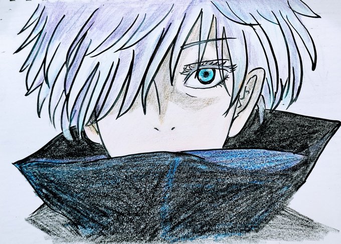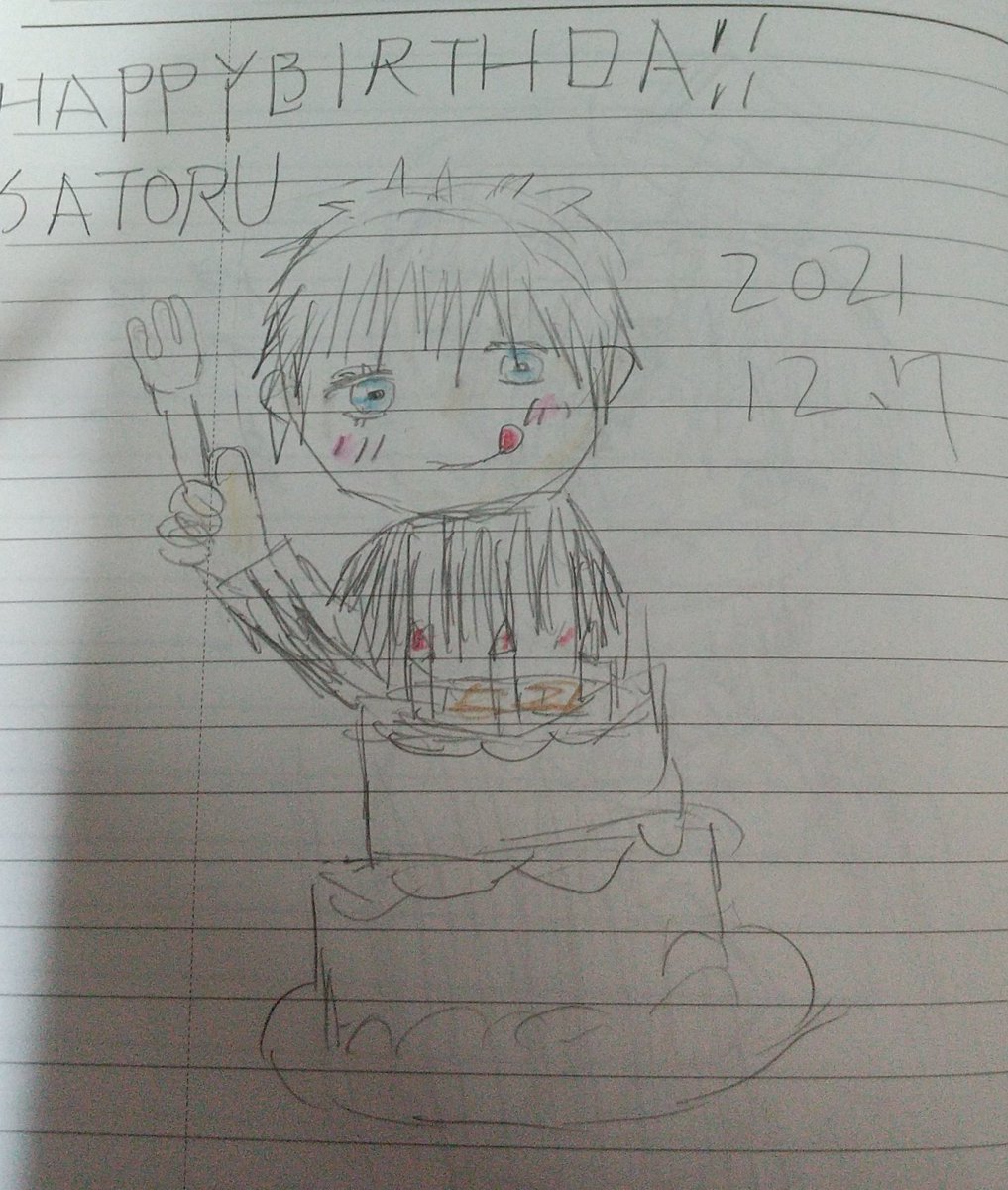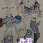 お誕生日なんだね☺️☺️💖最初に模写した過去絵ですが……おめでとう悟‼️🎂🎉🎁🎏早く娑婆に出てきてね〜お願い🙏😖😖😖 #五条悟誕生祭2022 #五条悟爆誕祭 #五条悟 #呪術廻戦ファンアート