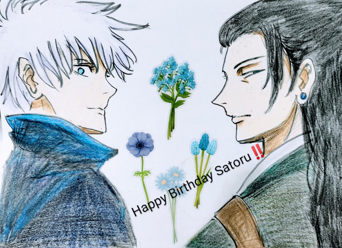 過去絵だけじゃ申し訳ないから、親友に祝ってもらうことに😋😋😋やっぱ一番うれしいよね悟😊😊おめでとう‼️🎉🎉 #五条悟生誕祭2022 #五条悟 #五条悟爆誕祭 #五条悟誕生祭2022 #夏油傑 #呪術廻戦ファンアート
