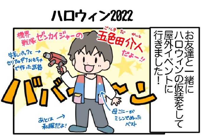 気づけば一ヶ月前の話だわ… ハロウィンでたーすけが #ゼンカイジャー の #五色田介人 の格好して 五色田さんみたいなコミュニケーションしてた。全力全開〜!! #育児漫画 #漫画が読めるハッシュタグ conikki-amadaconnie.blog.jp/archives/17436… (手作りギアトリンガーは本当に動くんよ…!動画はリプに貼るぜ!)
