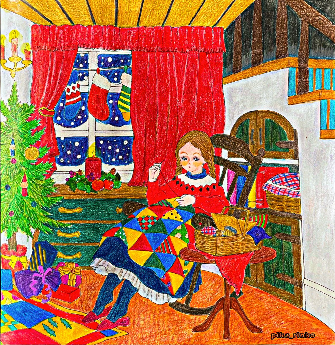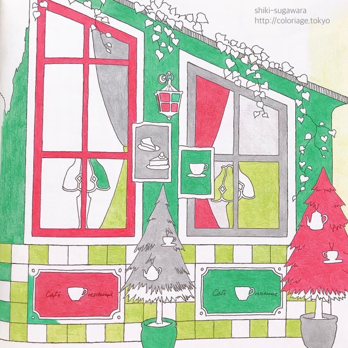 @dacchi_tt #憧れのお部屋 より。めっちゃクリスマスカラーにしちゃった(*´-`) #井田千秋 #chiakiida #大人の塗り絵 #大人のぬりえ #色鉛筆 #prismacolor #polychromos はぁ〜楽しかった❣️