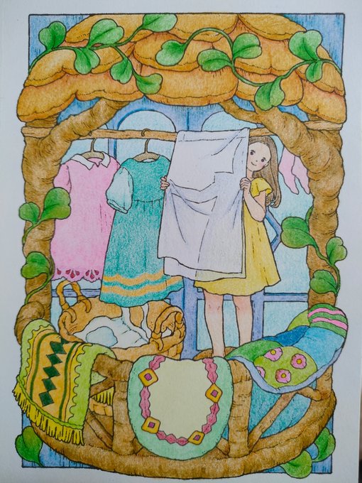 #家が好きな人塗り絵 企画参加させていただきました~ 初の固形水彩塗り絵でしたが楽しいっっっっ!! 上手下手にかかわらず夢中になりました 皆さんの素敵な塗り絵も見られて楽しい 使用画材 ホルベイン アーチストパンカラー prima marketing ヴィンテージパステル #家が好きな人 #井田千秋 twitter.com/dacchi_tt/stat…