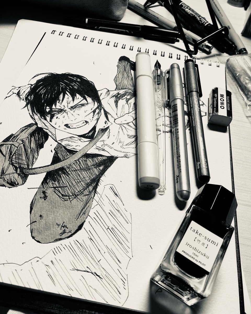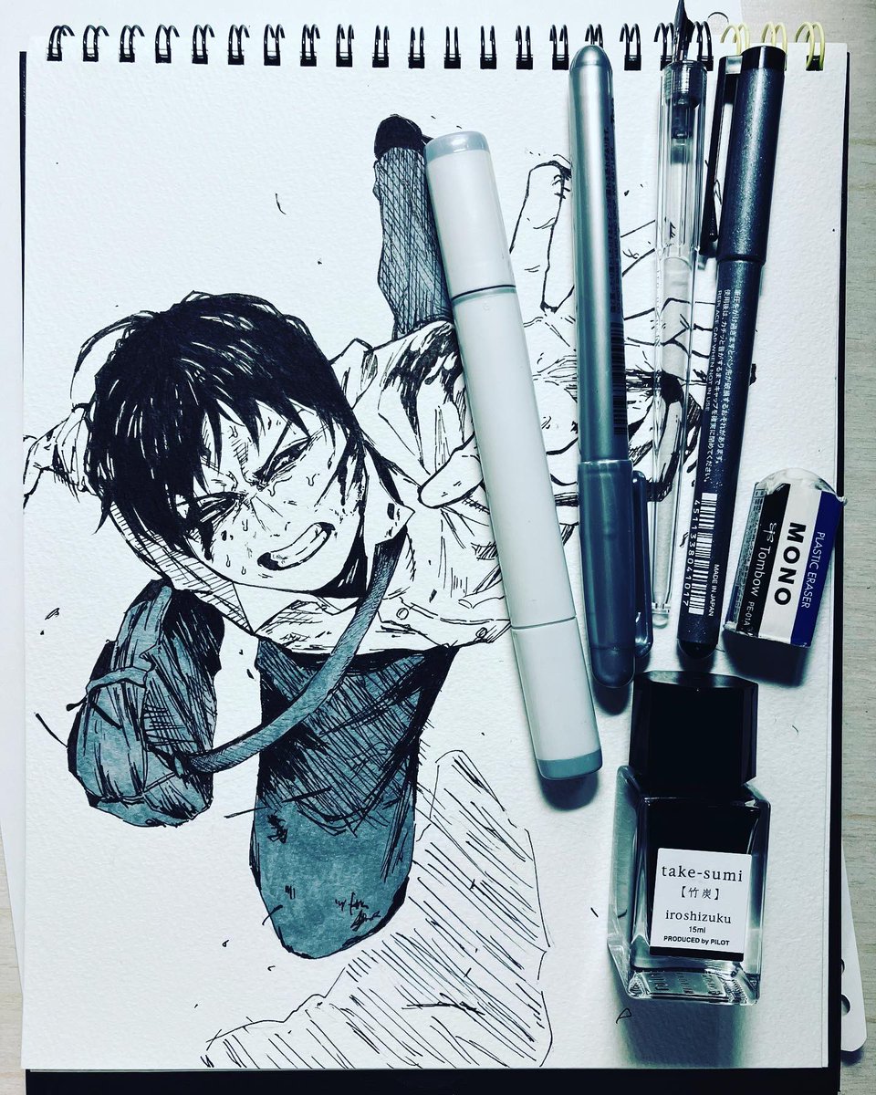 いつもと違う描き方で描いてみました。 鉛筆だと原稿が汚れるし、薄くなるので コントロールするのが難しいです(T^T) #オリキャラ #お絵描き #イラスト #アナログ絵 #アナログイラスト #お絵描きさんと繋がりたい #イラストさんと繋がりたい #亜人
