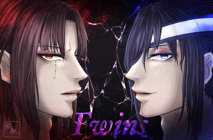 #亞桃のCriminalsRequiem 言霊家の双子 兄の紫影と弟の紫龍 育った環境の影響で紫影の方が少し身長低くて華奢だったりします☺️☺️ これで今5枚落書きと2枚背景無し絵を書いたことに…します!!