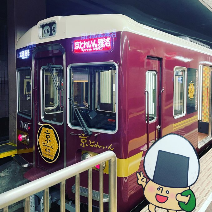 おむすびきのこさんは京都が大好き!阪急電車の京とれいんに乗ったよ。たまに乗れると嬉しいな☺️ #japan #kyoto #kyototrip #kyotojapan #kyototripper #京都 #京都観光 #おむすびきのこさん #yasijun #illustration #イラスト #旅 #kawaii #characterdesign #阪急電車 #京都河原町駅 #京とれいん