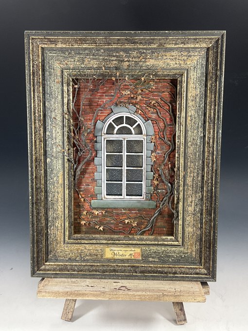 そして冬、高山ガクブチさんの上品なフレームとの相性も抜群、一番のお気に入りです。 枯れ木は一見簡単そうに見えるのですが、小枝全てが露出しているため、枝ぶりの作成に一番神経を使うのです。 売れてほしいような、手元に残したいような複雑な気分。 #京王ドールハウス展 #フレームアート