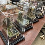 出展準備中 Tks_T2*CRAFTさん特注のアクリルケース、そしてそれに合わせて別あつらえしたベースに収まった箱庭たちは少しおすましした感じ。 お手軽フレームたちも並べると壮観です。 すこっつのワークショップを華やかにしてくれることでしょう。 @t2_craft_t #京王ドールハウス展 #フレームアート
