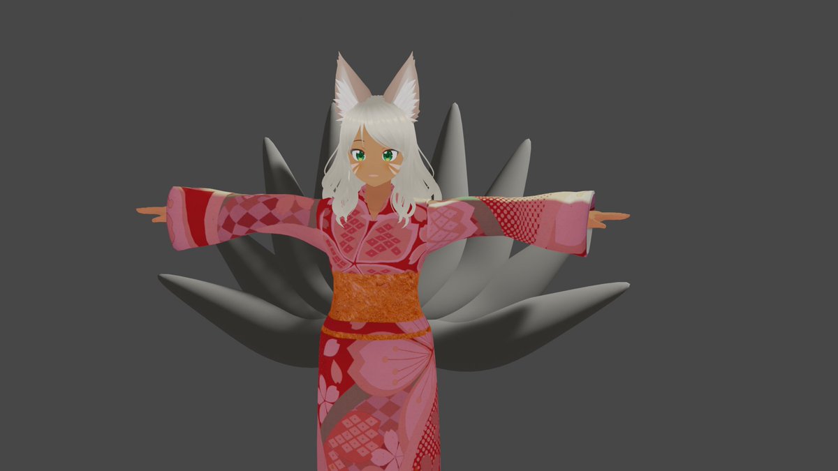 84日目「銀毛九尾」 #blender初心者 #blender #100日チャレンジ #京華 #VRoidStudio データが消えたショックのあまり、尻尾をつけました。モデルは京華さんと言います。