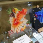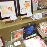 #京都ハンドメイドマルシェ (@kyoto_hm)初日もうすぐオープンです✨搬入、設営完了しました👏 ぜひ<Cー62 桃花褐ノ華>にお越し下さいませ~!!金魚たちとお待ちしております😆❤️ #金魚 #和装小物 #透明水彩 #illustration #誘牙