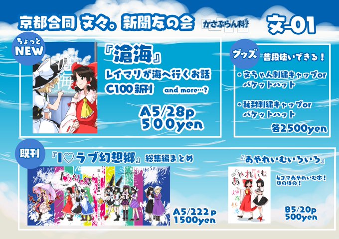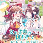 【新刊告知】 第百三十七季 文々。新聞友の会にて 『文と霊夢の四季折々 -あやれいむ春夏秋冬合同-』を頒布します! 春夏秋冬、365日の毎日があやれいむ! 1月から12月まで文と霊夢のささやかな日常だったり、季節のイベントだったりが綴られた合同です。 委託↓ 🍈melonbooks.co.jp/detail/detail.… #京都合同