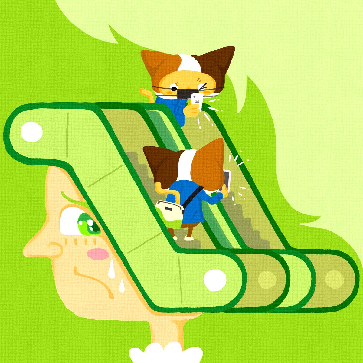 特殊な場所、サイズの広告。こりゃあ現場行って実際のサイズ感とか確かめなくては…。結果、地下鉄のエスカレーターで写真を撮る不審者の出来上がり、そんな一日でした。 #ネコキャット #猫と仕事とまた仕事と #京都市営地下鉄 #フリーランス #グラフィックデザイン #イラスト #illustration